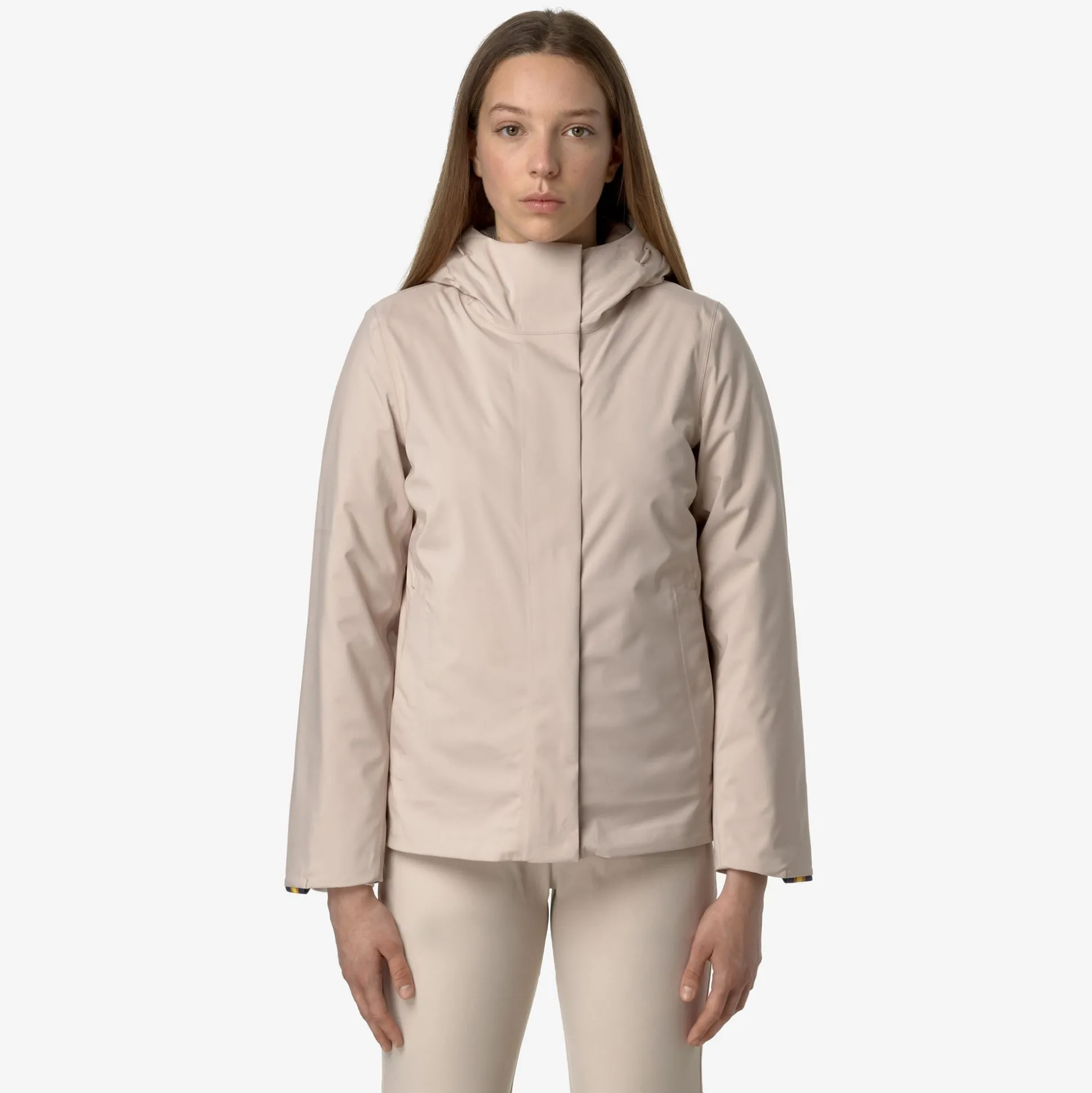 Dorel è una giacca di lunghezza media da donna, ideale per l’inverno, che interpreta i look quotidiani con uno stile cittadino e linee pulite grazie all’assenza di loghi sul fronte. Questa giacca, dalla vestibilità accogliente con chiusura a zip e cappuccio avvolgente regolabile, presenta un guscio in tessuto tecnico a tre strati con nylon esterno, membrana intermedia e maglina con cuciture interne termonastrate dal colore a contrasto. La calda imbottitura in ovatta fluttuante e una confortevole trapuntatura interna garantiscono una protezione ottimale dal freddo più intenso. Il modello ha le tasche a filetto e il dettaglio del tape K-Way sul polsino.