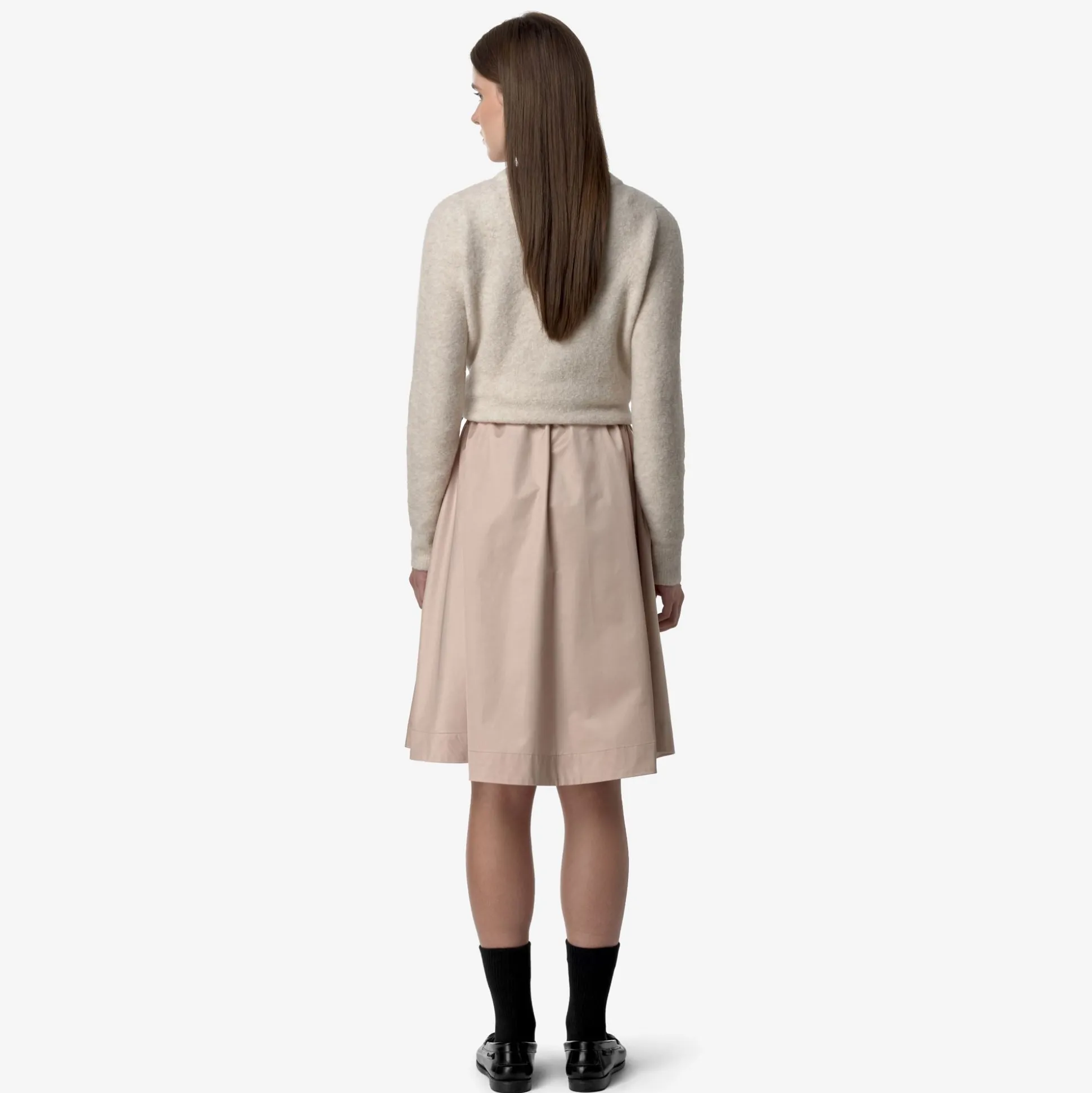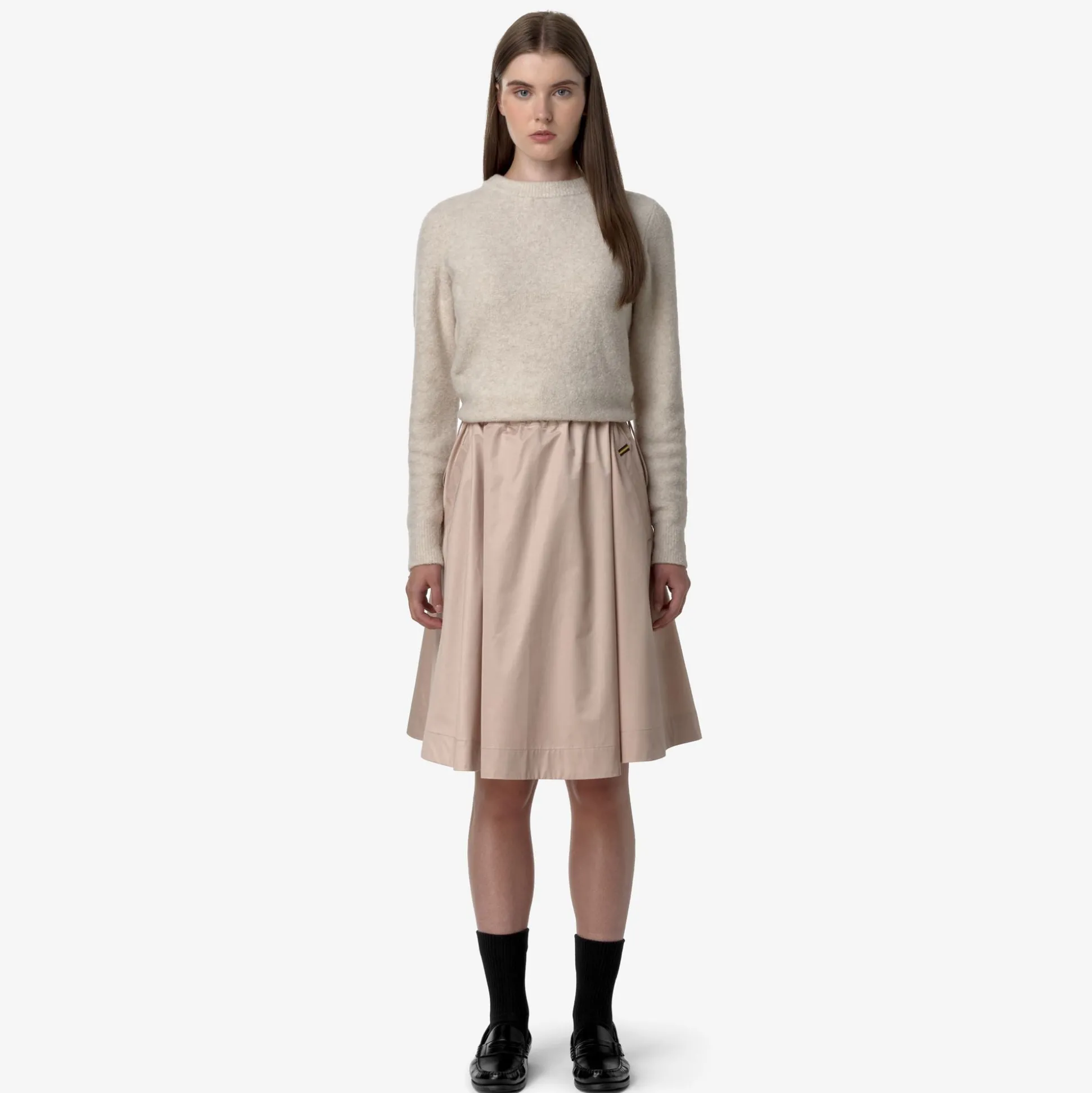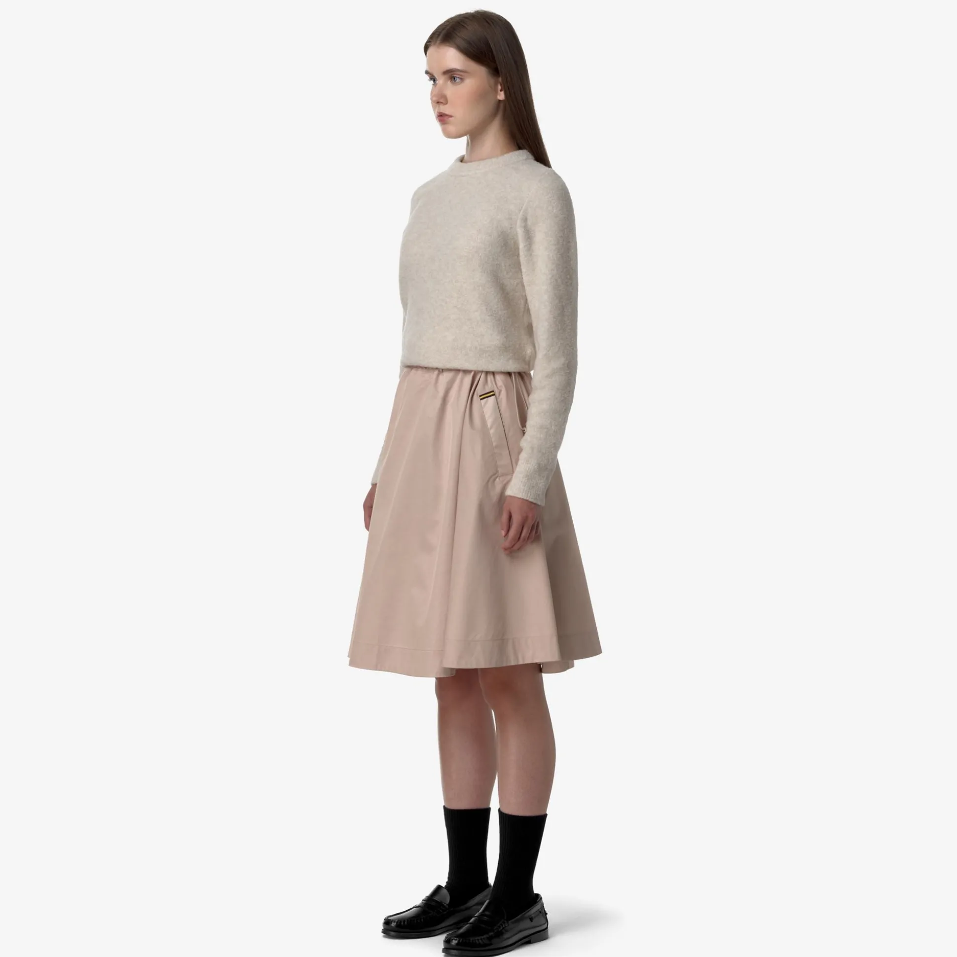 Gaela è una gonna di lunghezza media realizzata in tessuto satinato dalla mano morbida e vellutata. Il modello ha una vestibilità accogliente con vita regolabile e tasche a scomparsa: infinite possibilità di mix and match, per completare gli outfit quotidiani in modo femminile e ricercato.