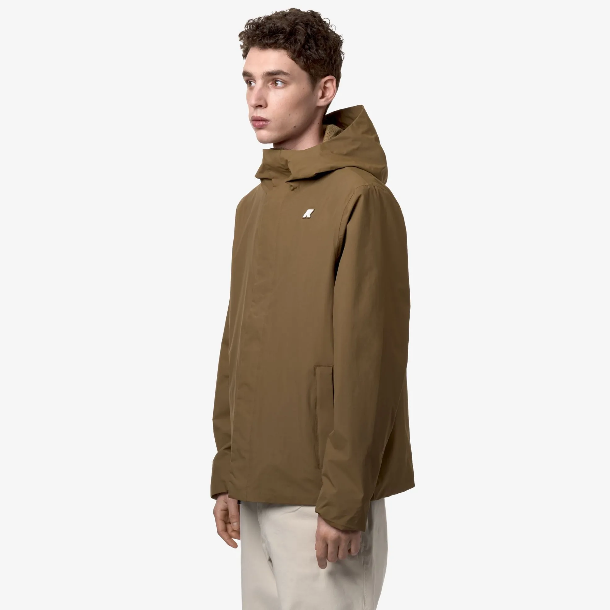 Jack è una giacca corta da uomo pensata per la stagione primaverile perché combina l’esterno in nylon ottoman dalla mano fresca e croccante con una fodera in rete: entrambi i materiali sono riciclati. All’interno, il capo svela una rifinitura curata in ogni dettaglio con fodera in rete nella parte alta e il nastro multicolor K-Way al centro per un accento distintivo e deciso.