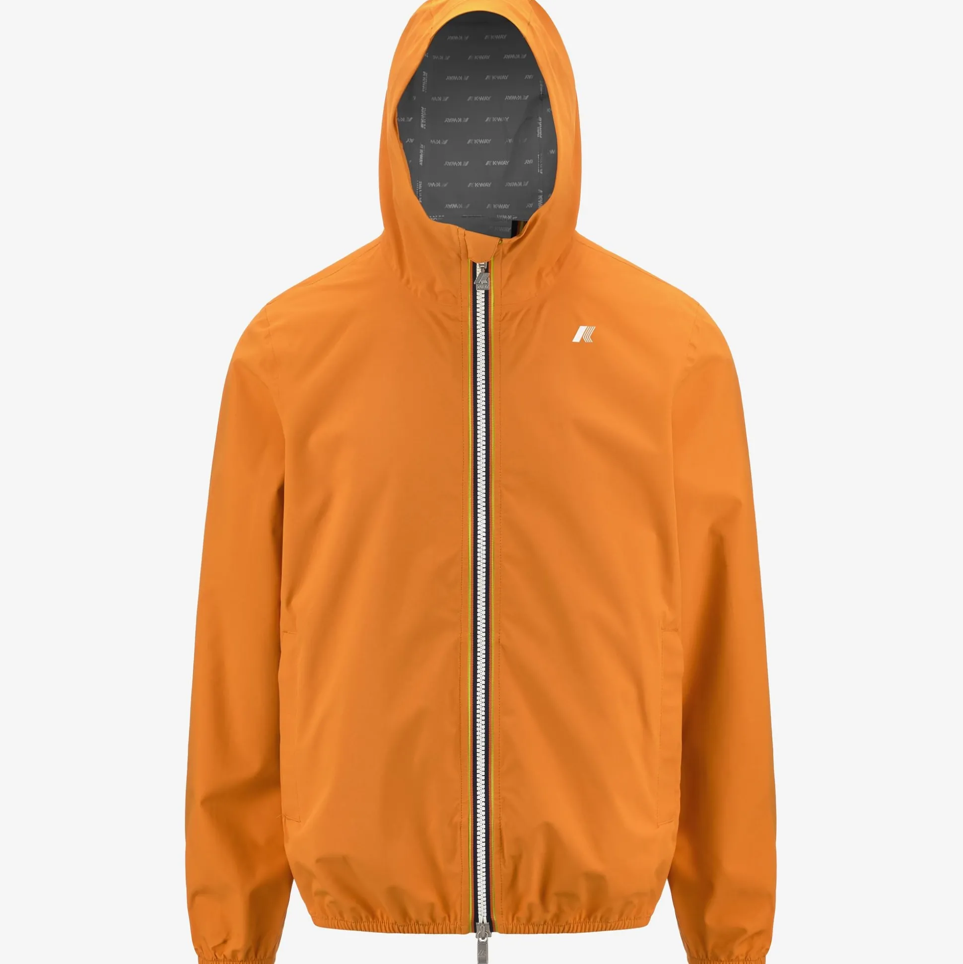 Jack è una giacca corta da uomo ideale per le mezze stagioni e con vestibilità slim, realizzata in tessuto tecnico elasticizzato e riciclato, che segue i movimenti e protegge dal vento e dalla pioggia fino a 5000 colonne d’acqua. L’interno è foderato con una membrana isolante decorata con lettering K-Way stampato all over in tonalità argento. Le tasche laterali con zip, il cappuccio avvolgente, i polsini e i bordi con inserti elastici sono dettagli funzionali che garantiscono aderenza e una vestibilità comoda e veloce.