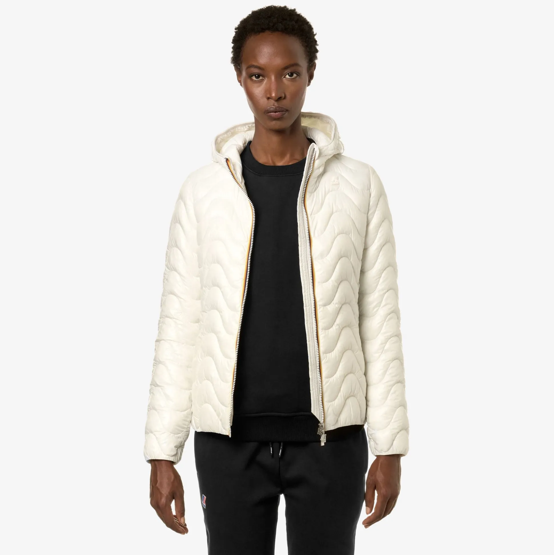 Lily è una giacca corta da donna dal design dinamico che valorizza la silhouette femminile. Realizzata in nylon riciclato che protegge dall’acqua e dal vento, ha una trapuntatura a onde dall’effetto grafico distintivo. L’aspetto innovativo è l’imbottitura in Thermore®, una fibra ottenuta dalla plastica riciclata e altamente isolante.
