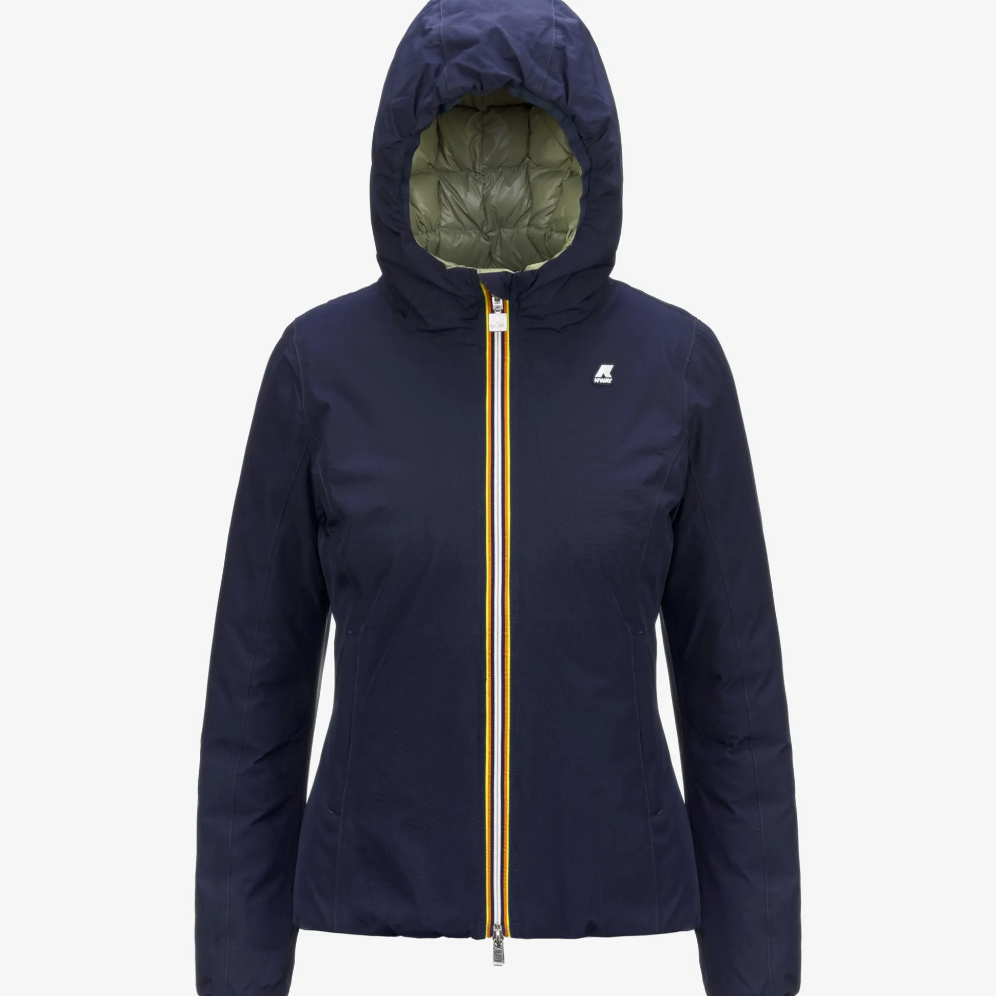 Giacca corta da donna Lily pensata per il clima più rigido perchè imbottita in piuma. Il modello si caratterizza per il design reversibile con un lato in tessuto tecnico liscio e l’altro in nylon trapuntato dal colore a contrasto. Il cappuccio, le tasche, la chiusura con zip e la flap antivento sono dettagli funzionali che proteggono dal freddo.