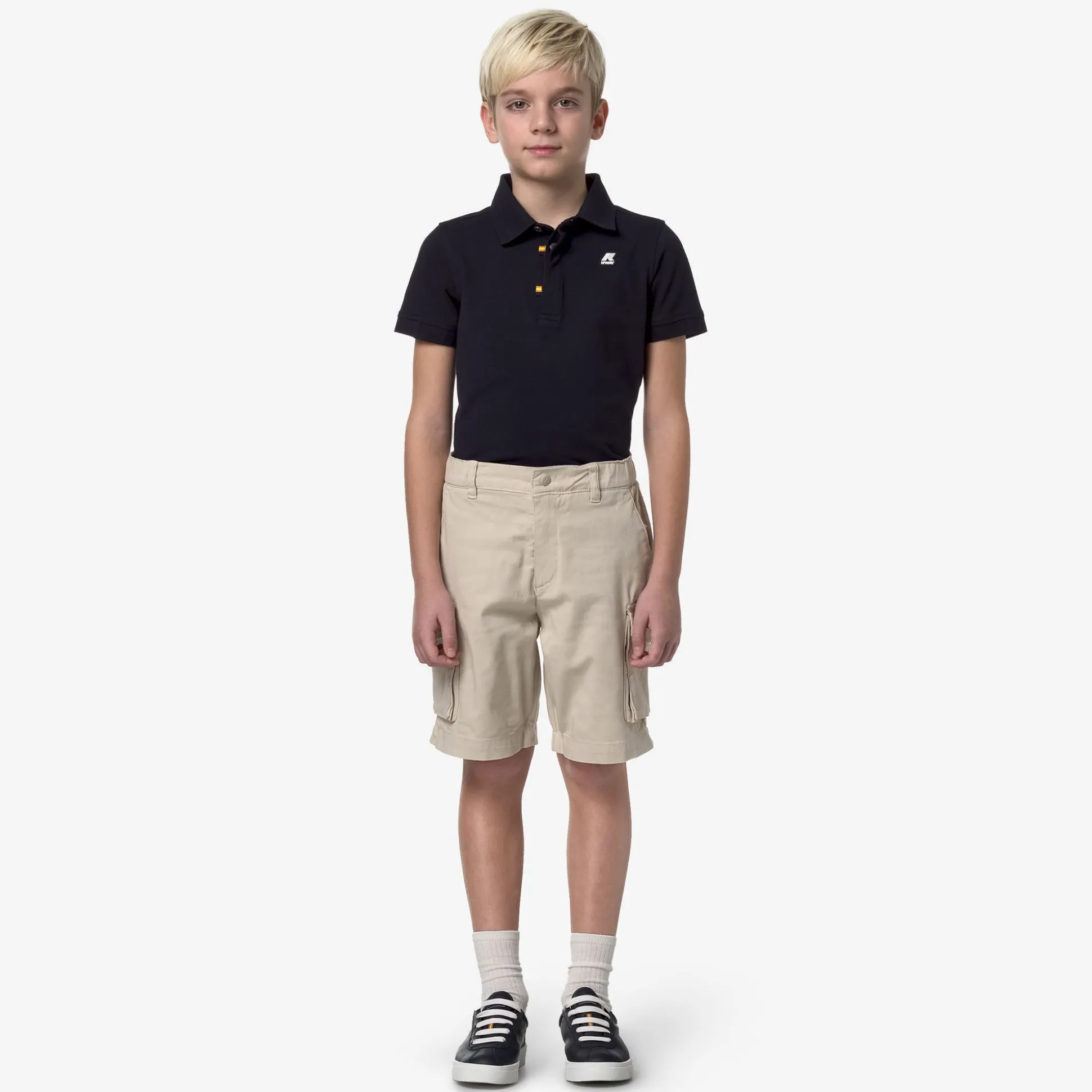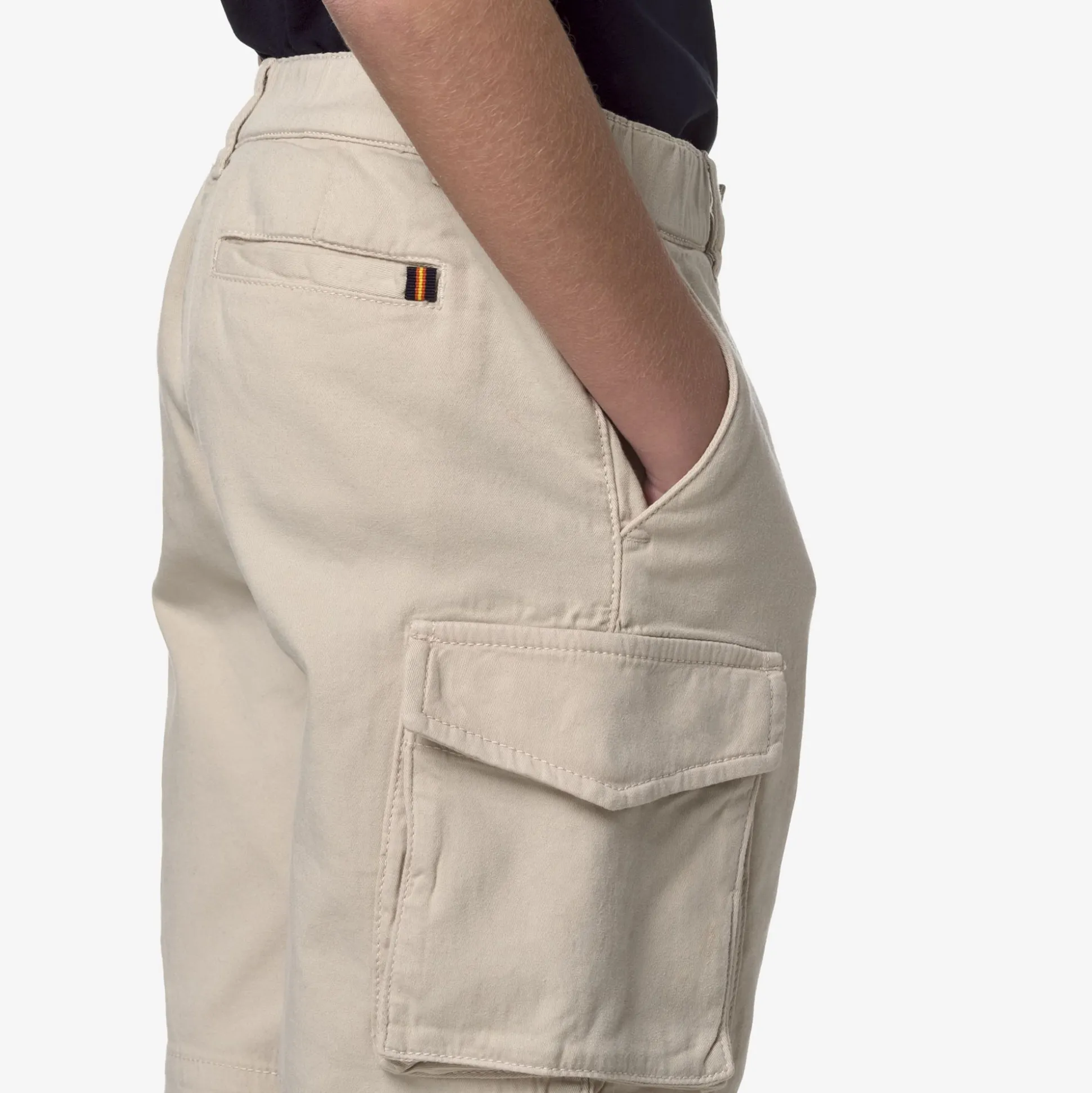 Davon è un bermuda in gabardine per bambini dal look versatile e dalla vestibilità stretch. Confortevoli ed essenziali per le stagioni più calde, presentano un design cargo con comode tasche utility laterali e vita elasticizzata con chiusura a zip e bottone.