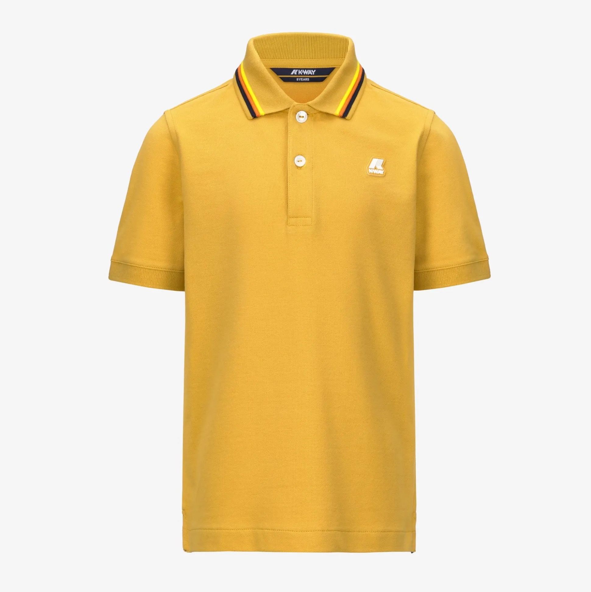 Jude è la polo da bambino realizzata in piquet di cotone stretch morbido ed estremamente flessibile. Si caratterizza per il bordo del colletto con profilo a righe ispirate al tape K-Way e gli spacchetti sui lati che assecondano i movimenti.