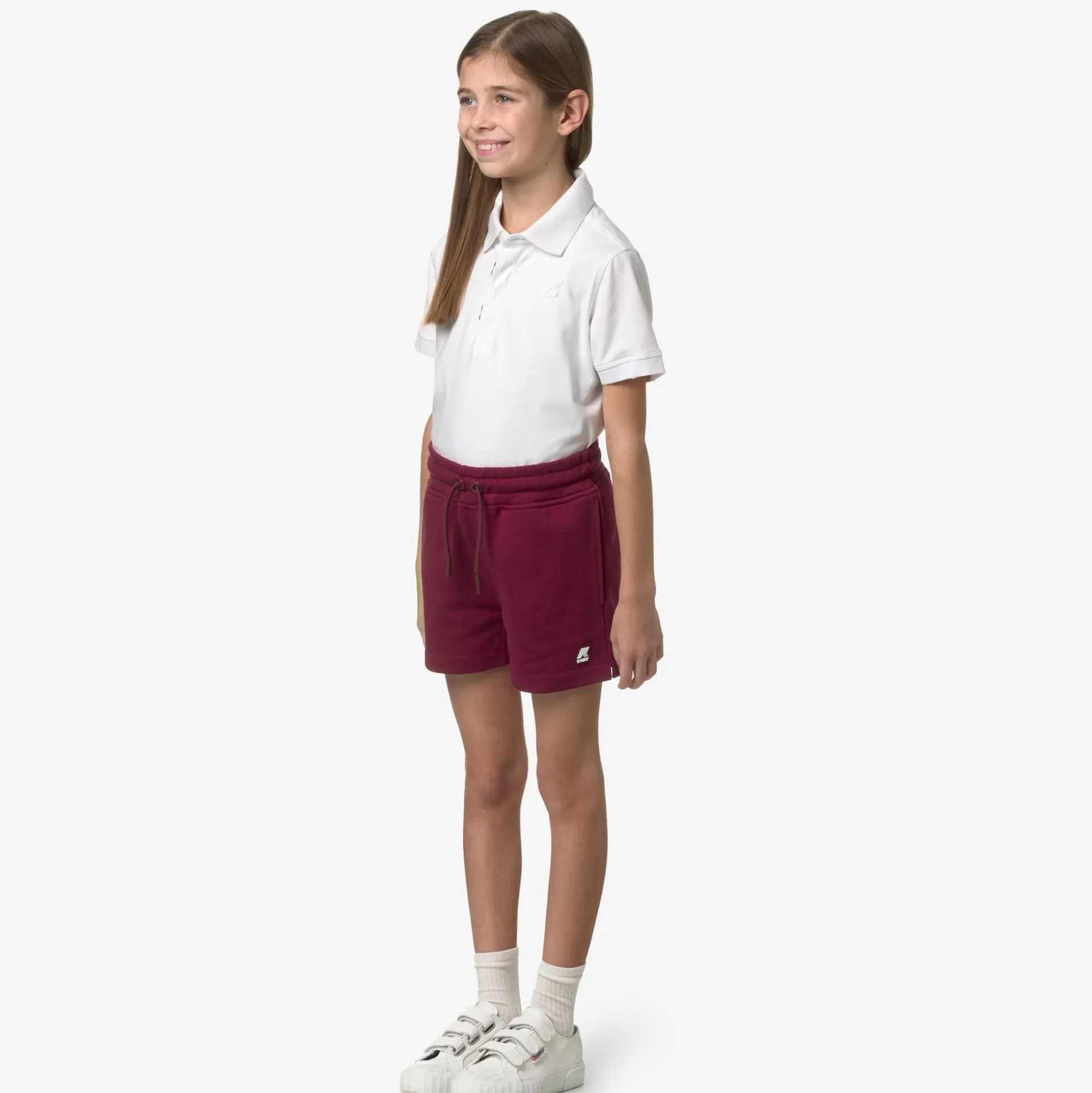 Rika sono i bermuda da bambina in felpa perfetti per il tempo libero e la scuola. Il modello offre massimo comfort e libertà di movimento grazie alla coulisse in vita e agli spacchetti sui lati. Il logo K-Way è la firma distintiva del brand.