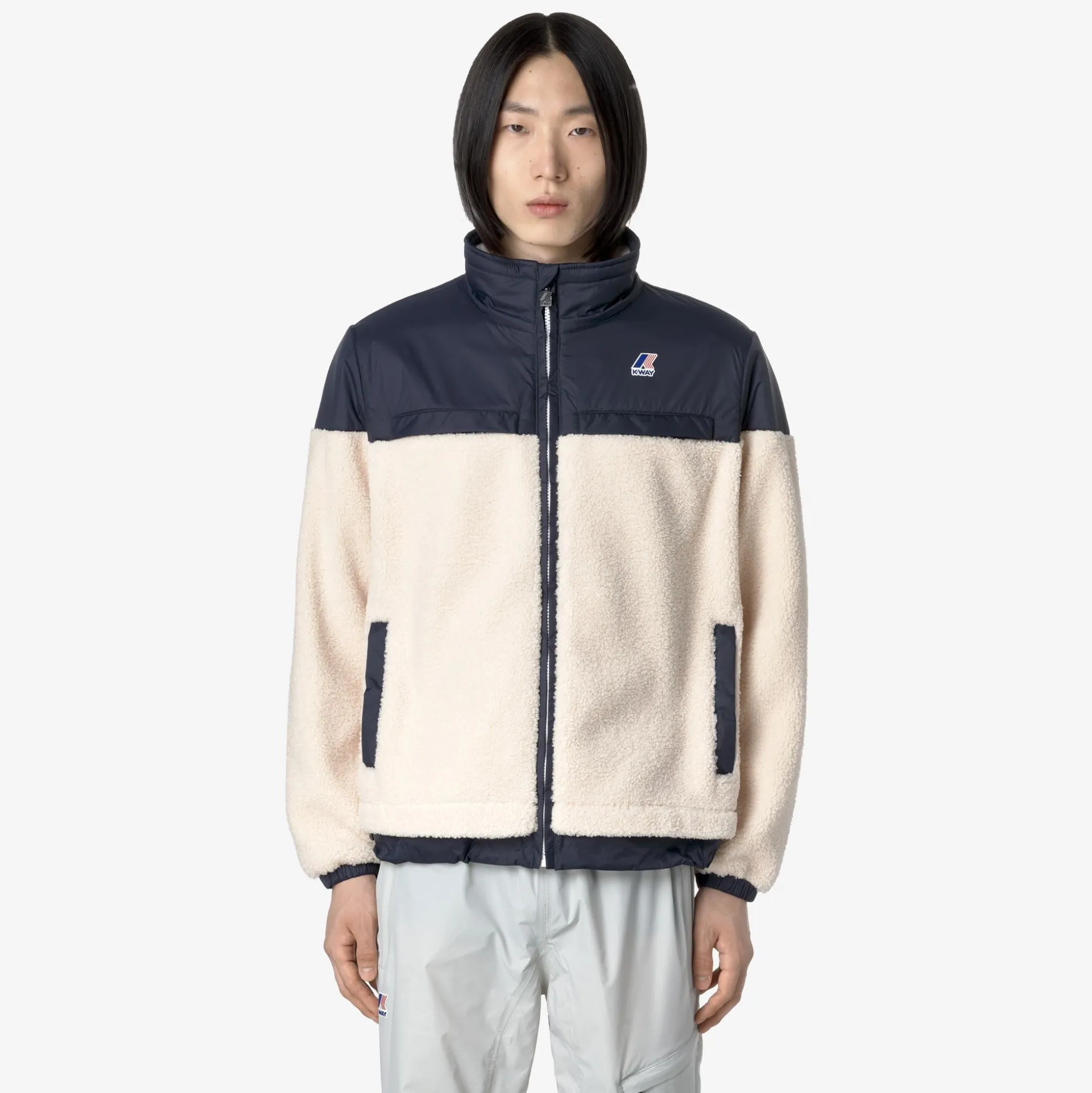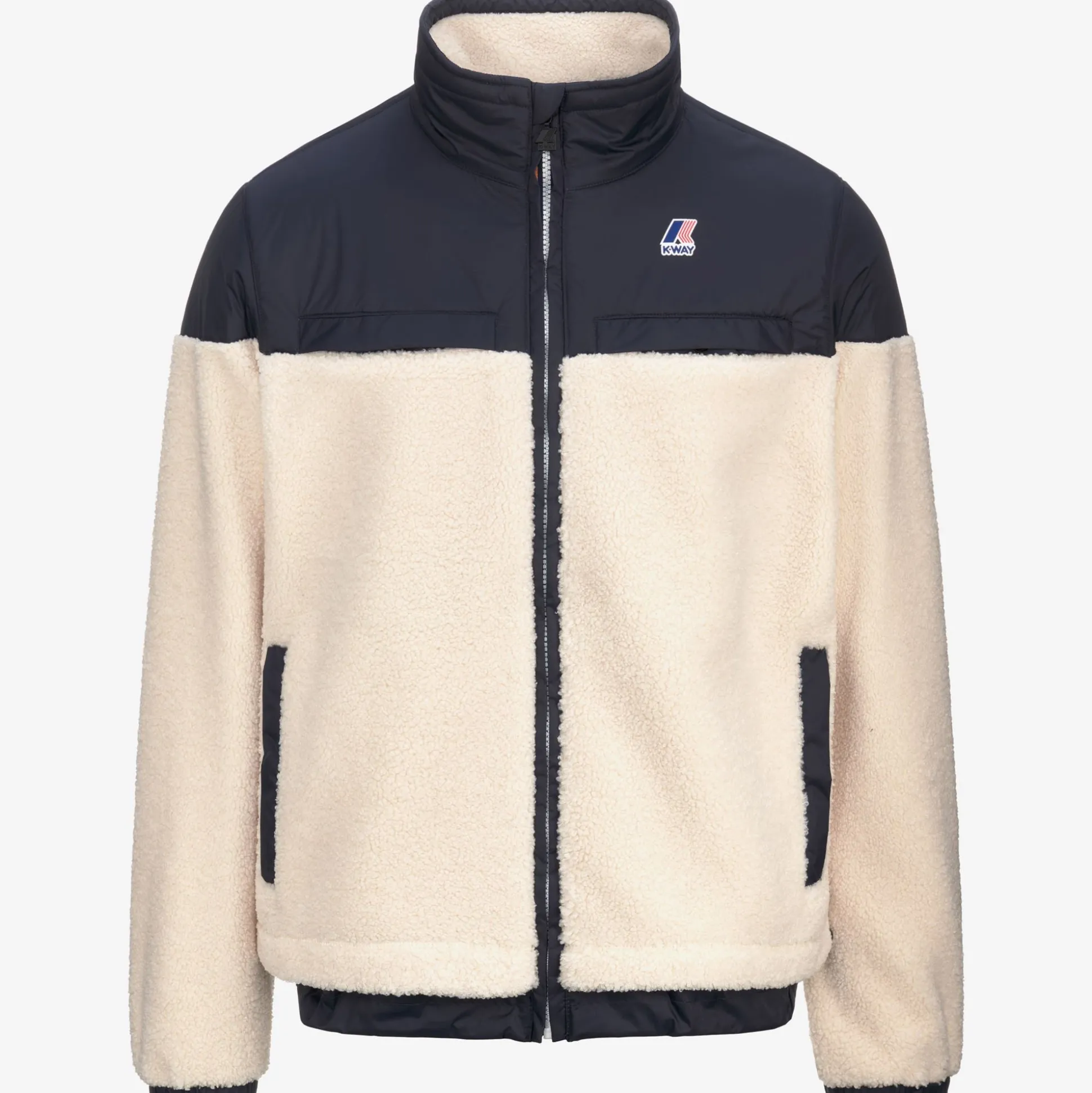 Nersev è una felpa antivento dal look pratico e sportivo, ideale da indossare anche come giacca da esterno durante il cambio di stagione e i primi freddi. Il modello, con vestibilità regolare e chiusura a zip, è realizzato in tessuto sherpa intervallato da applicazioni in nylon che attribuiscono un tocco tecnico al look incrementando la resistenza del capo. Questa felpa presenta collo alto, polsini elastici e fondo regolabile, 2 tasche laterali e un taschino verticale sul petto.