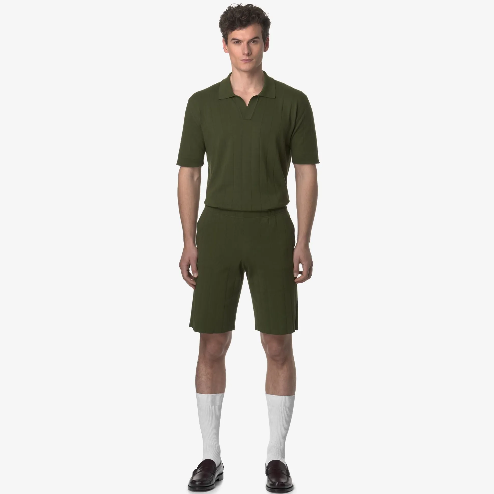 Leoben è un bermuda dal design chino loose fit, realizzato con un filato in puro cotone egiziano dalla mano morbida e liscia a costine, che limita la produzione di pilling. Il capo si caratterizza per il design minimalista con tasche laterali e dettaglio grafico del tape K-Way sul retro, in vita.