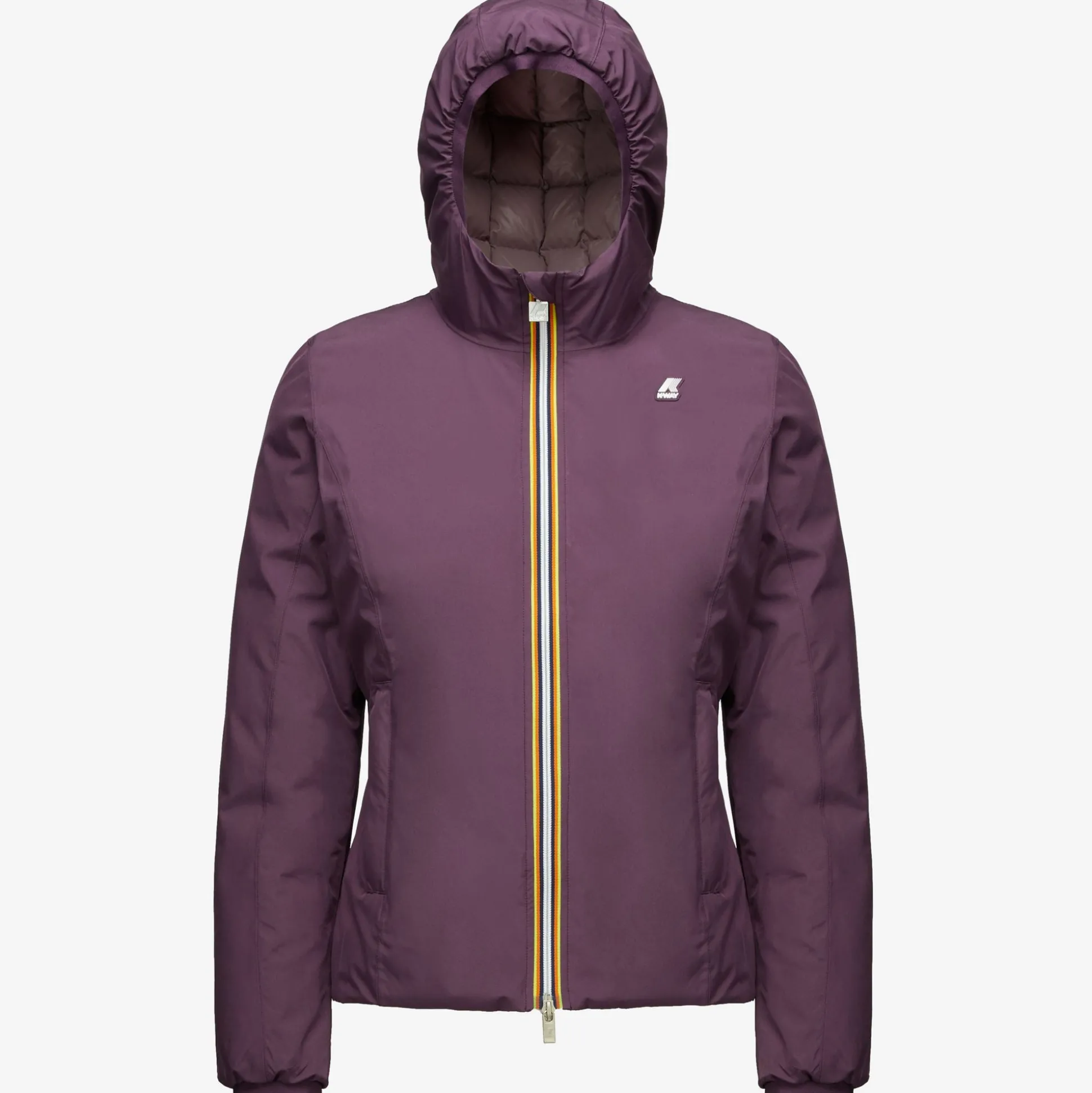 Giacca corta da donna Lily pensata per il clima più rigido perchè imbottita in piuma. Il modello si caratterizza per il design reversibile con un lato in tessuto tecnico liscio e l’altro in nylon trapuntato dal colore a contrasto. Il cappuccio, le tasche, la chiusura con zip e la flap antivento sono dettagli funzionali che proteggono dal freddo.