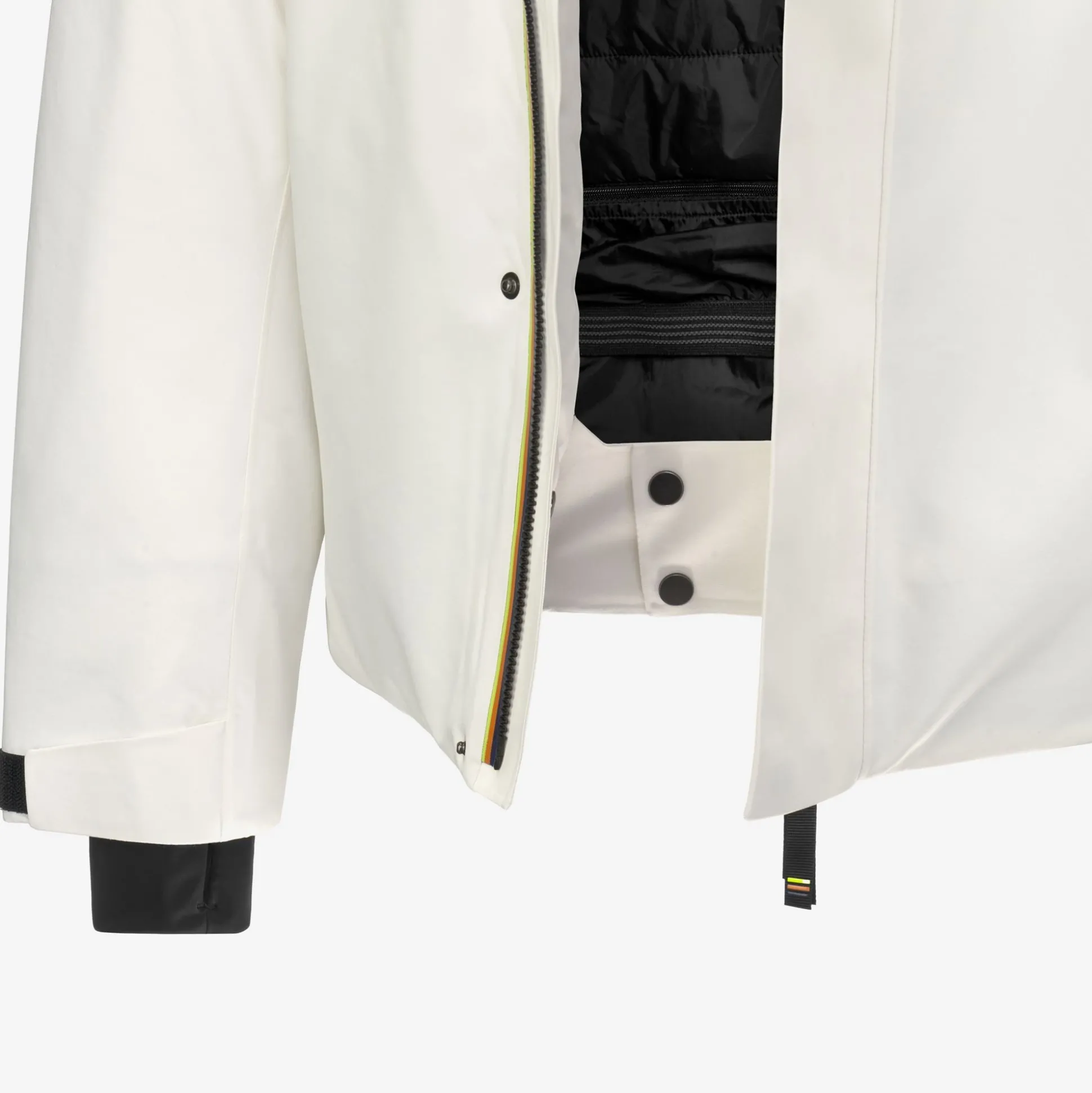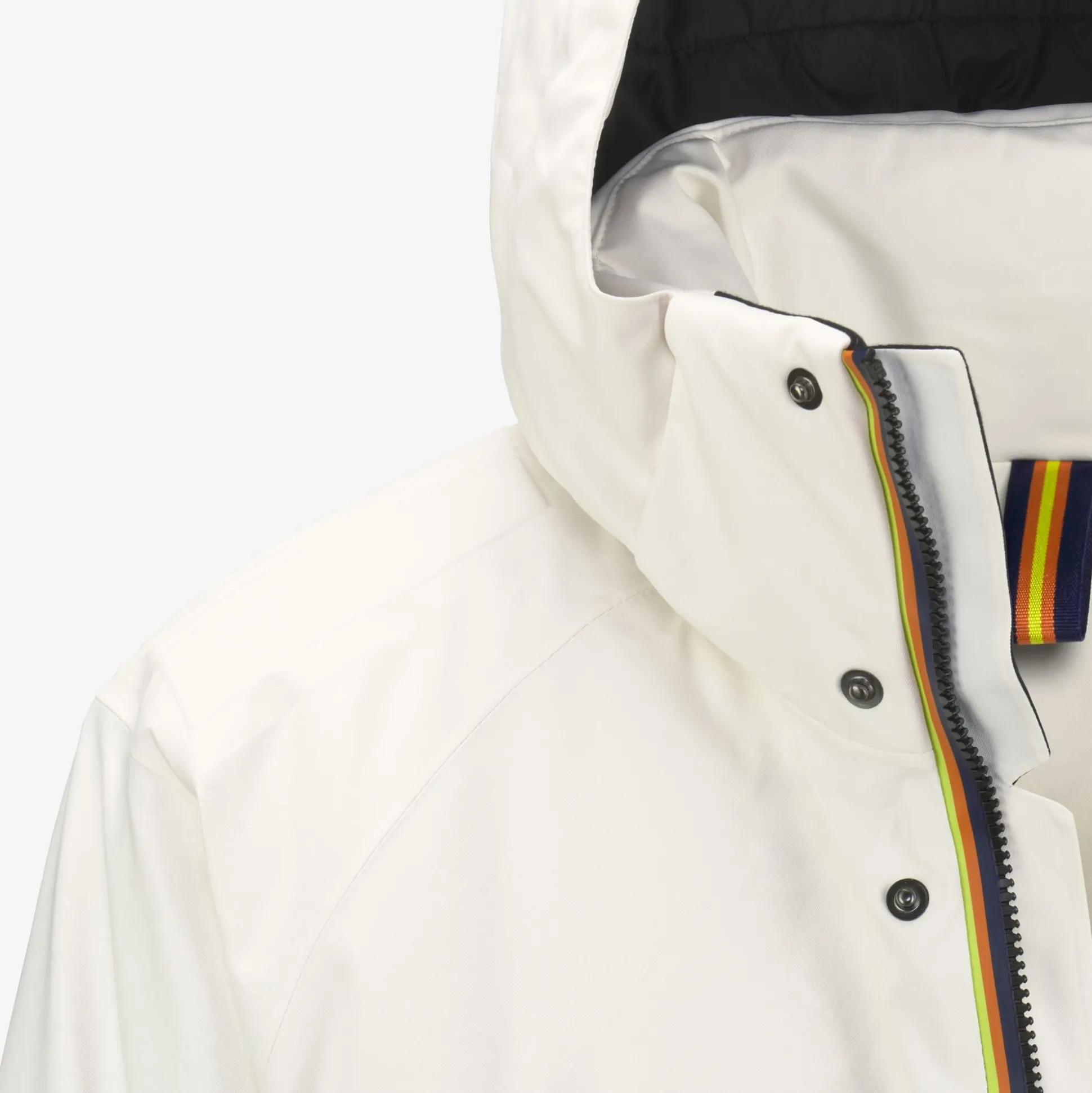 - Cappuccio con visiera staccabile regolabile con corda elastica e fermacorda