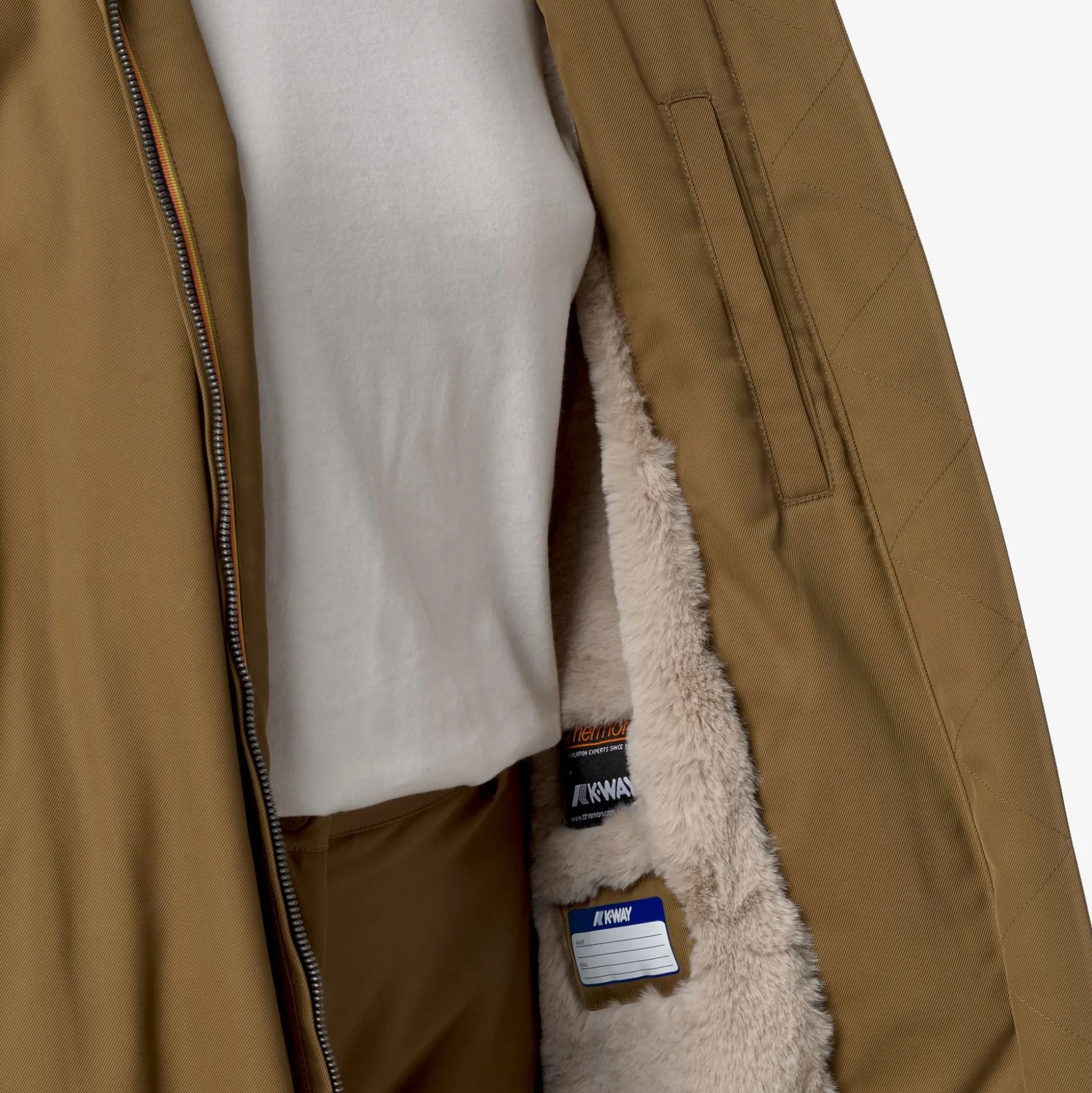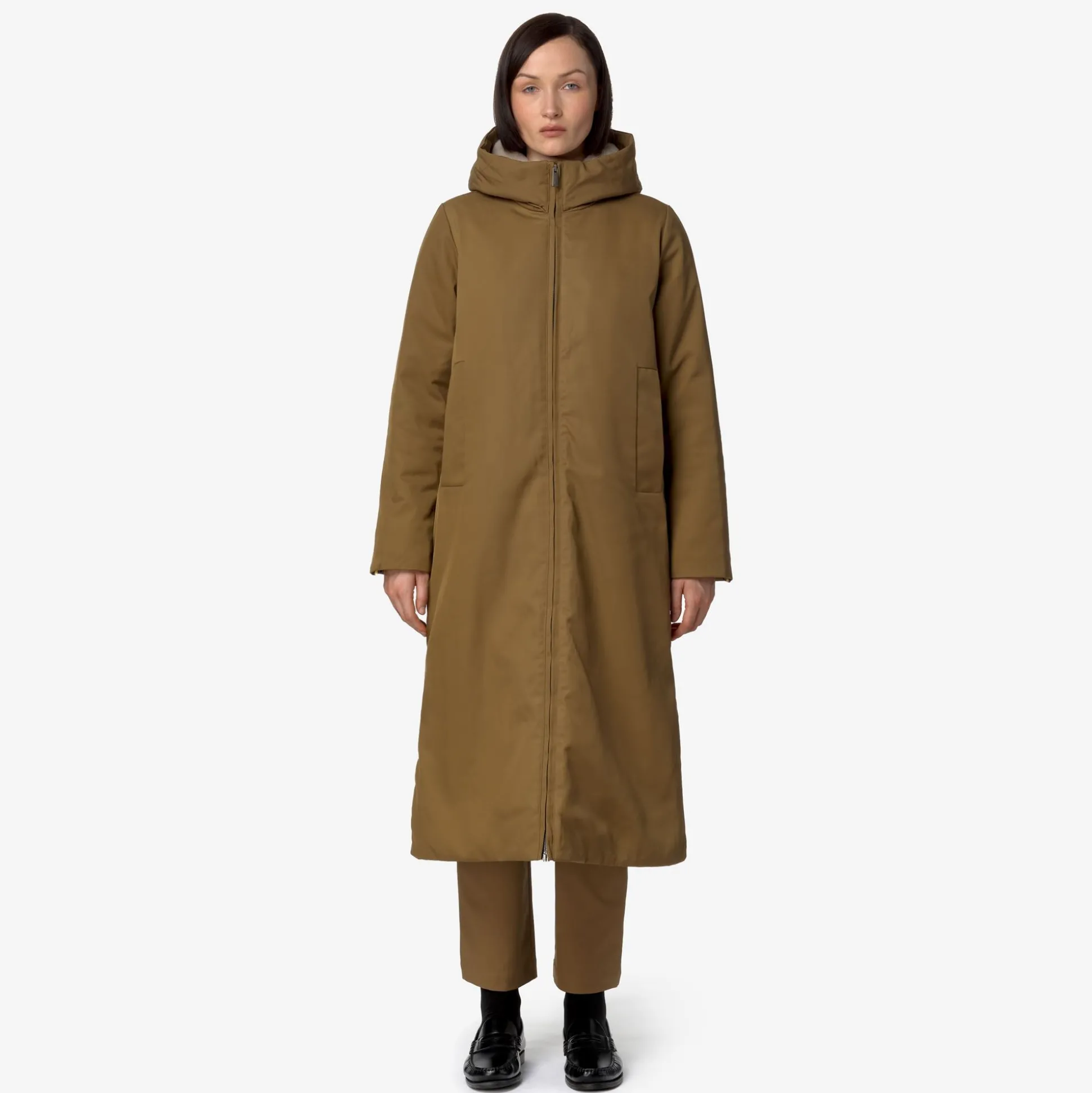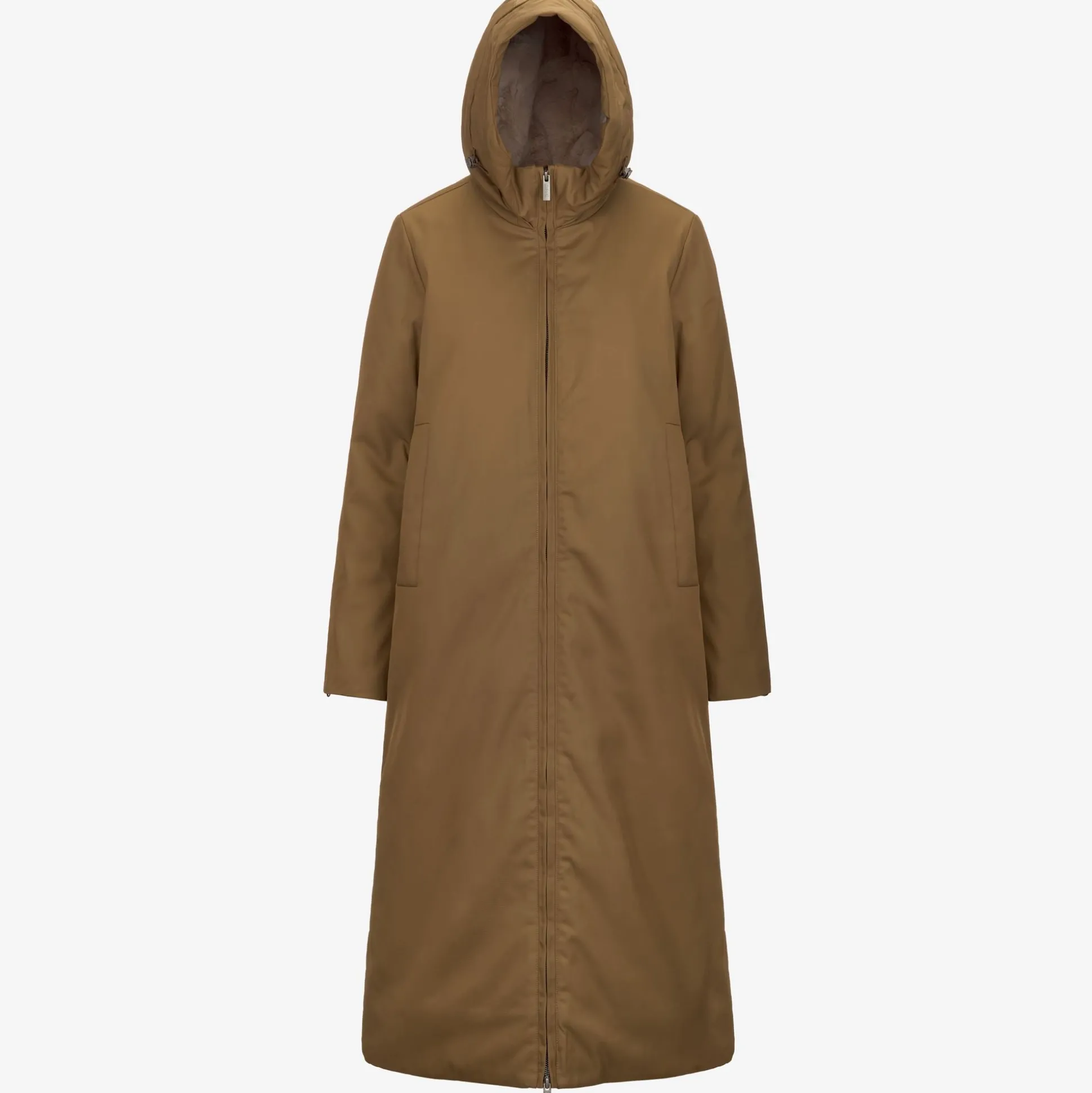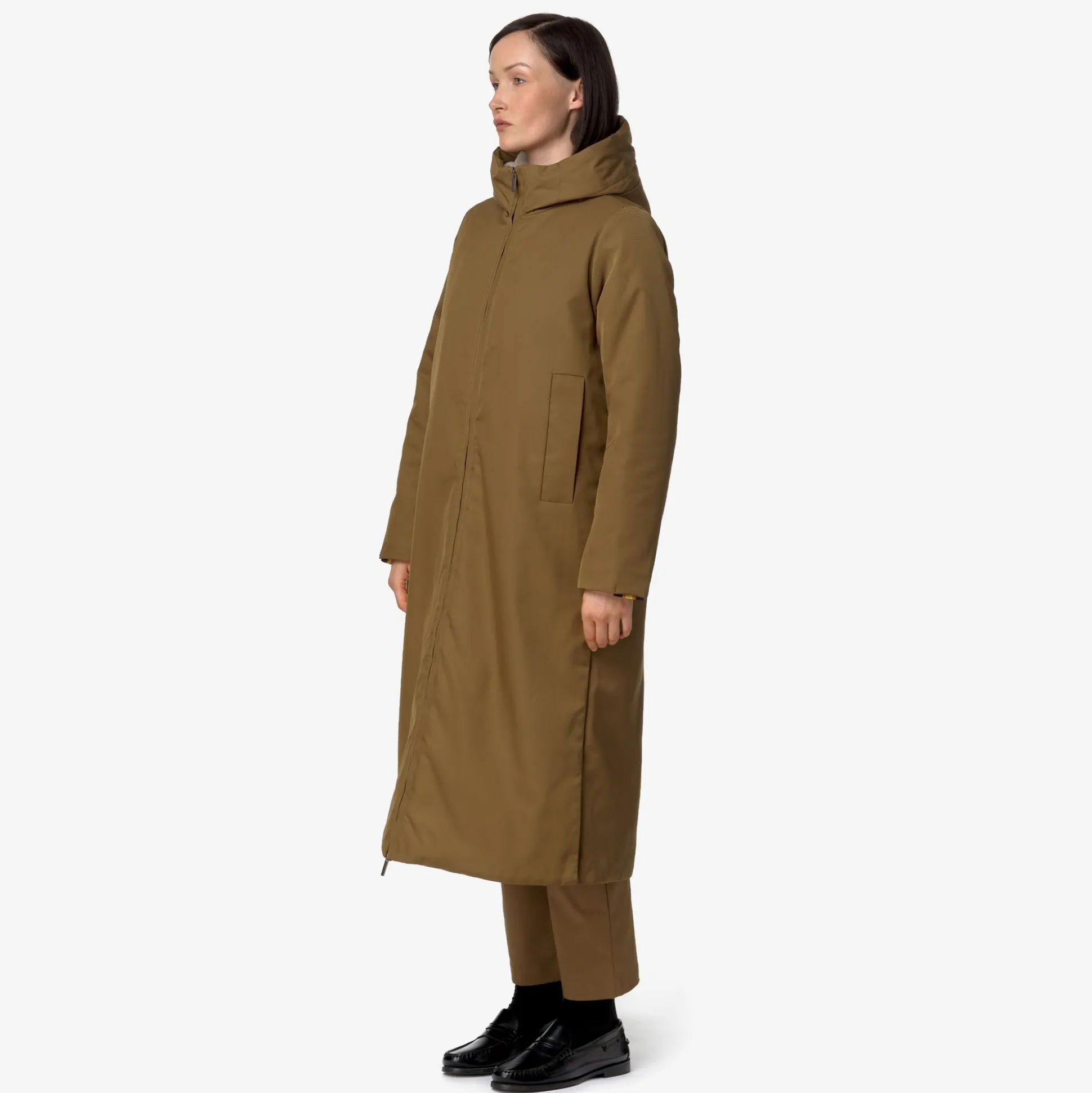 Oller è una giacca full length da donna dal gusto urban, dichiaratamente contemporanea e perfetta per gli spostamenti quotidiani. Questo modello ha un guscio esterno impermeabile, realizzato in tessuto tecnico con motivo twill e presenta un grado di calore medio grazie all’interno in faux-fur che risulta caldo, morbido e avvolgente. Il capo è dotato di chiusura con zip, cappuccio avvolgente e regolabile, tasche laterali e vita regolabile con coulisse; presenta, inoltre, l’elegante dettaglio del tape K-Way sul polsino.