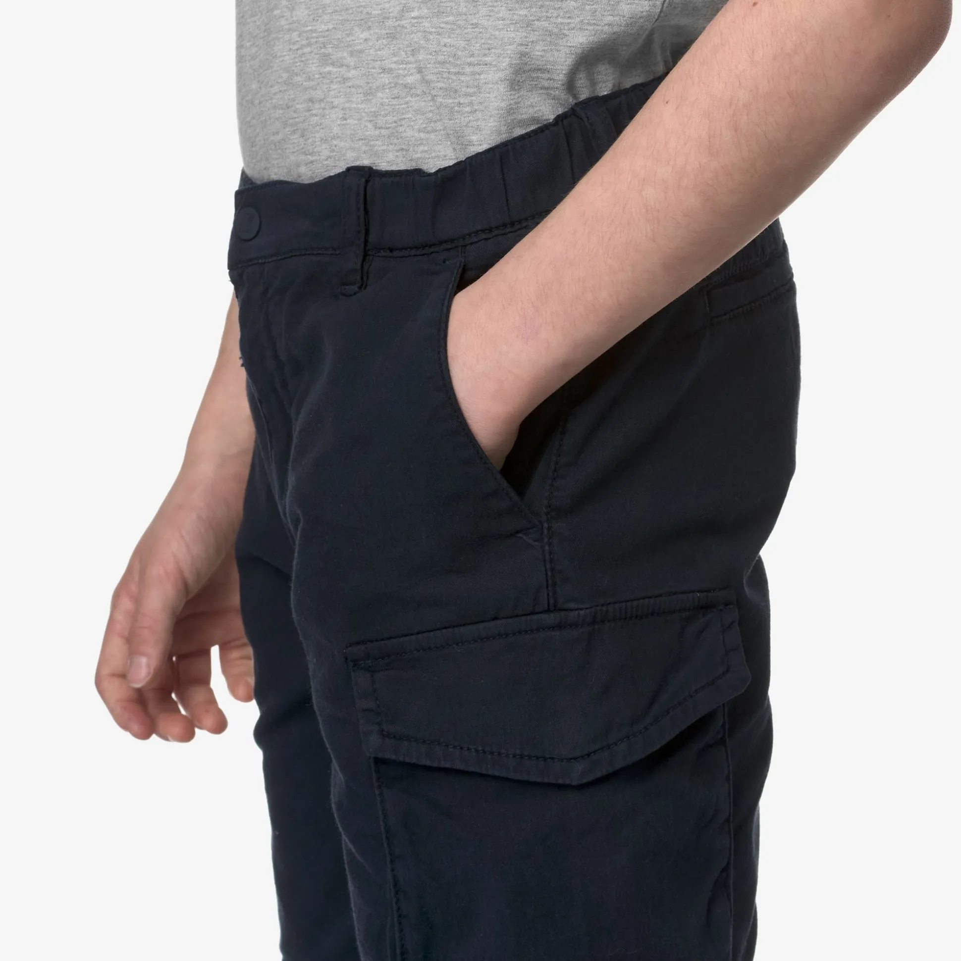 Davon è un bermuda in gabardine per bambini dal look versatile e dalla vestibilità stretch. Confortevoli ed essenziali per le stagioni più calde, presentano un design cargo con comode tasche utility laterali e vita elasticizzata con chiusura a zip e bottone.