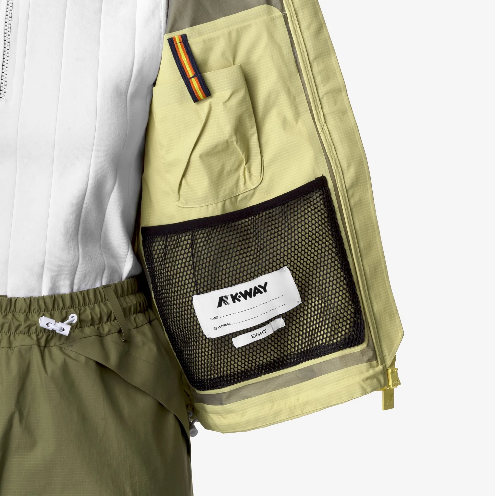 Soisir è una giacca corta da donna dal design boxy loose fit con maniche raglan, ideale per le mezze stagioni, realizzata in tessuto tecnico a 3 strati, antivento e antipioggia fino a 5000 colonne d’acqua e confortevole a contatto con la pelle. La giacca si caratterizza per lo stile utility: costruzione full zip con colletto, polsini elasticizzati e orlo inferiore regolabile con coulisse, due grandi tasche con patta frontali e una posteriore che rende il capo impacchettabile. Amiable è il progetto K-Way che coniuga funzionalità e rispetto per l’ambiente. Questo capo è realizzato in nylon riciclato e riciclabile al 100% ed è rifinito con cuciture termonastrate antivento, anch’esse realizzate con materiali di scarto.