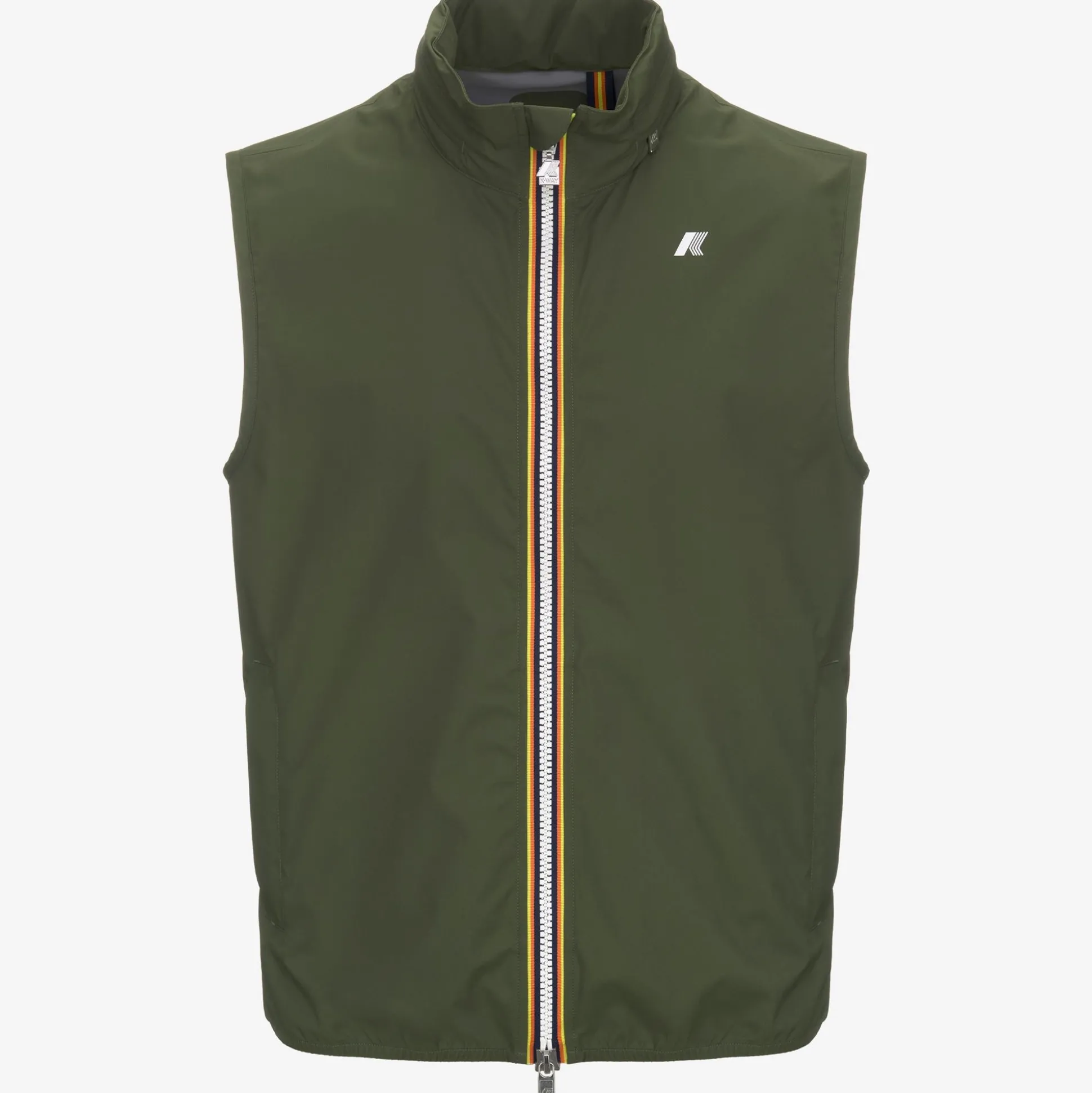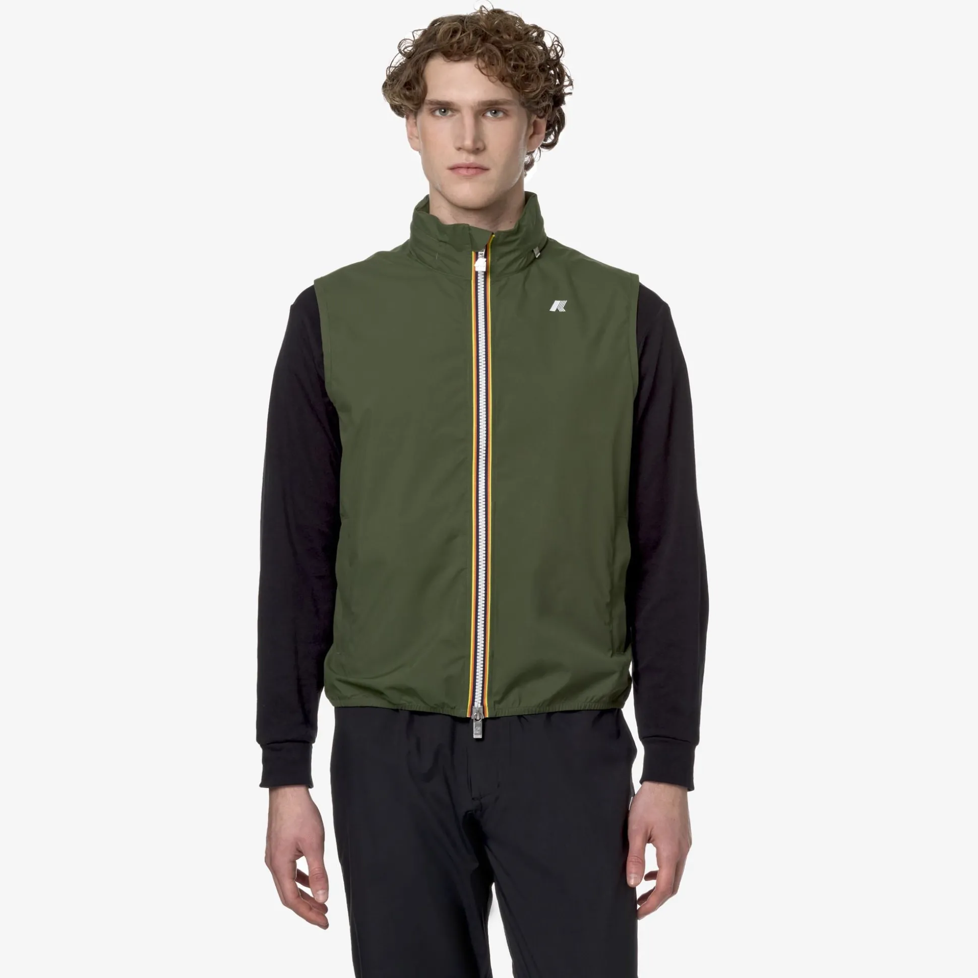 Il gilet Valen è pensato per essere indossato sopra una t-shirt durante la mezza stagione o sotto una giacca quando le temperature iniziano ad abbassarsi. Realizzato in tessuto tecnico elasticizzato e riciclato, segue i movimenti e protegge dal vento e dalla pioggia fino a 5000 colonne d’acqua. L’interno è foderato con una membrana isolante decorata con lettering K-Way stampato all over in tonalità argento. Le tasche laterali con zip, il cappuccio staccabile e i polsini con inserti elastici sono dettagli funzionali che garantiscono aderenza e una vestibilità comoda e veloce.